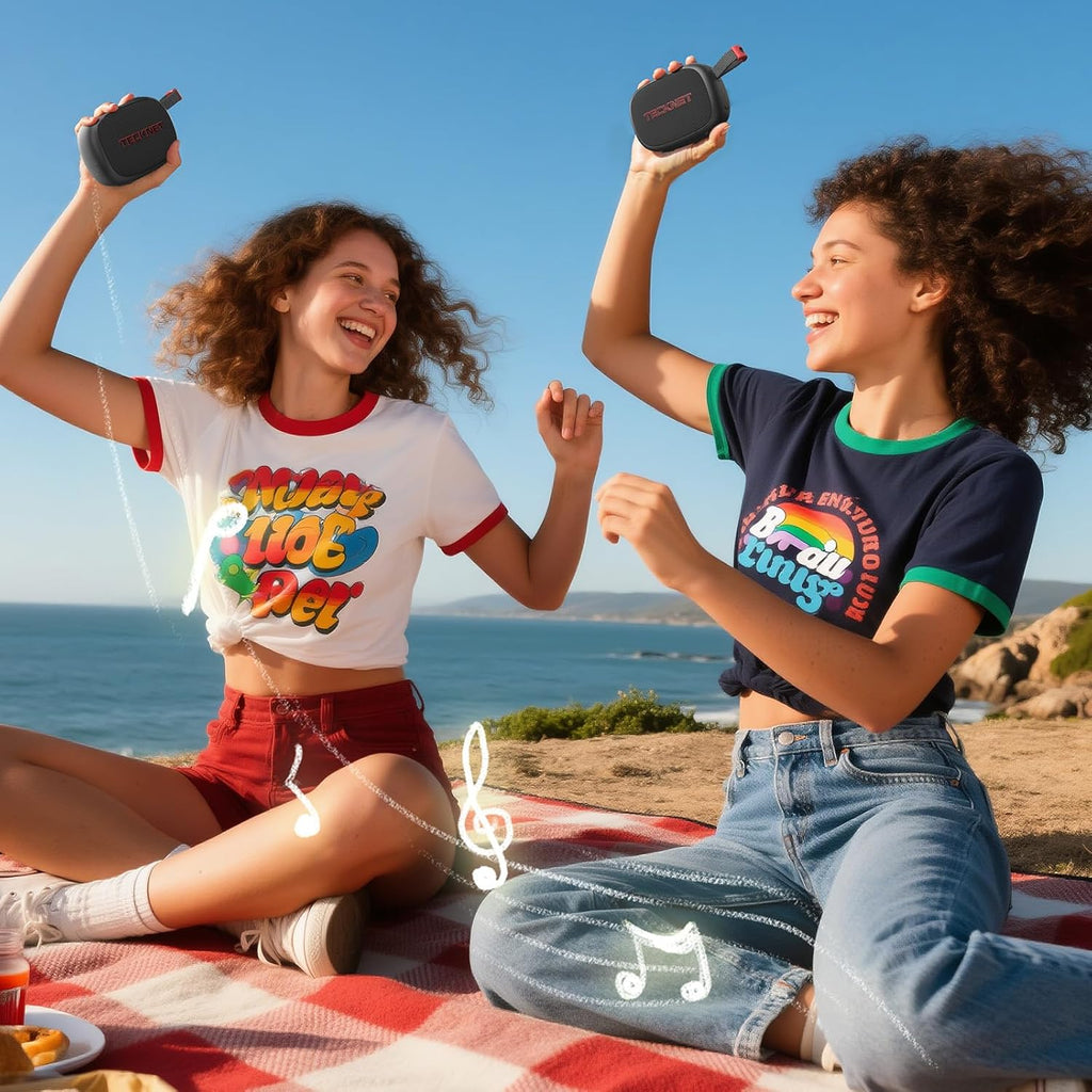 Der tragbare Bluetooth Lautsprecher von TECKNET verfügt über einen integrierten, geflochtenen Tragegurt und einen Magnetfuß. Dadurch lässt er sich leicht transportieren und sicher an Rucksäcken, Fahrrädern oder anderen Metalloberflächen befestigen. Das zweifarbige Logo verleiht ihm einen stylischen Touch und macht ihn alltagstauglich.